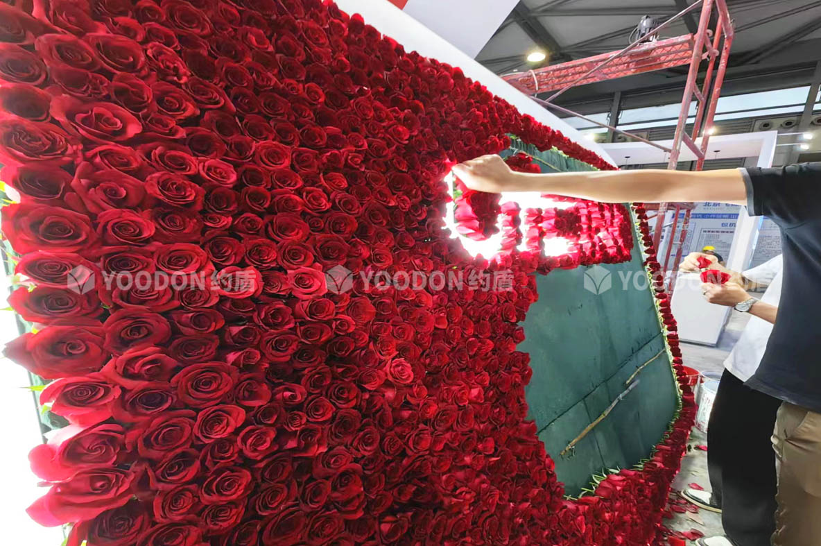 展位從不同角度都通透明亮,非常吸睛,多處LED大屏幕、柔性燈帶冰屏使用,讓展臺動感起來,玫瑰花展臺的設計更是新穎之處,擴大視覺的同時大氣渲染了寰宇通達的國際品牌形象,聚擾眼球,給參展觀眾帶來不一樣的視覺盛宴。