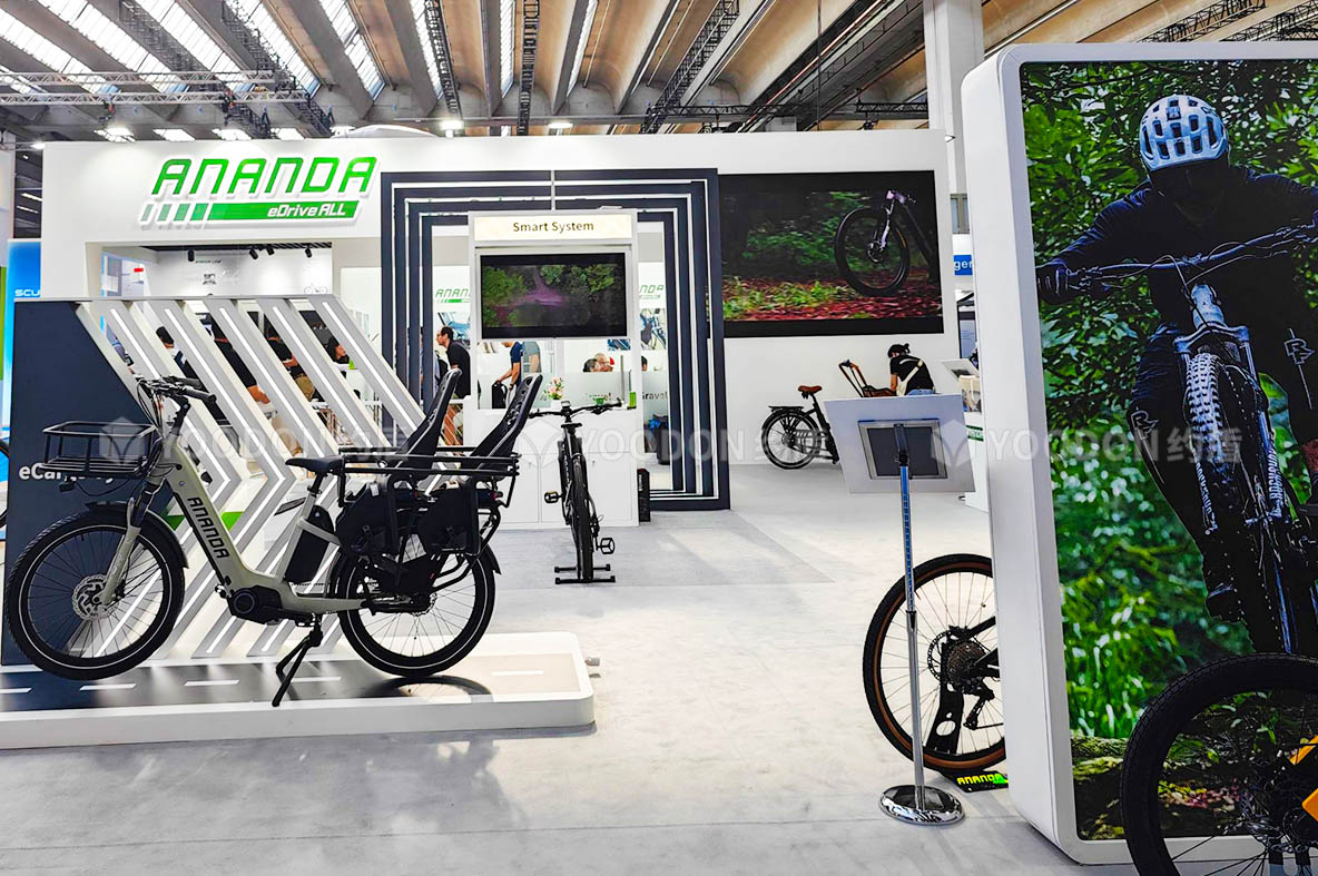 2023歐洲自行車展覽會(EUROBIKE)于2023年6月21日至6月25日在德國法蘭克福會展中心舉辦,促進了自行車運動在全球的發展。約盾展覽助力安乃達德國展會搭建企業品牌未來發展,以精致的造型設計,塑造出一個充滿活力的綠色展位,贏得客戶和參展觀眾盛贊。